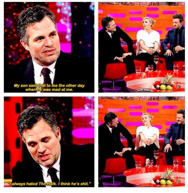 ▼「浩克」馬克·盧法洛不僅不適兒子的偶像,還被生氣的兒子嫌棄「我一直都很恨浩克,我認為他就是一坨屎!」耿直的兒子「浩克」無可奈何。