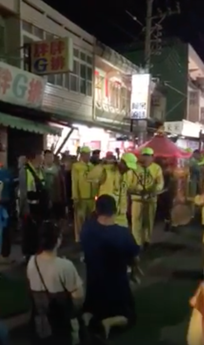 ▼網友「地表大叔」見證了這整段過程,當時一位父親跪在鑾轎前,胸口抱著雙腳萎縮的孩子,想為孩子祈福。媽祖的鑾轎本來是一路疾行,但看到他時先是後退了幾步,又往前靠近。