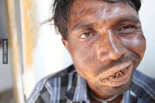 ▼現在,Pakkirappa試圖通過展示他這種特別的技能,以賺取外快。神奇的是,他吃磚頭時並沒有損害到他的牙齒。