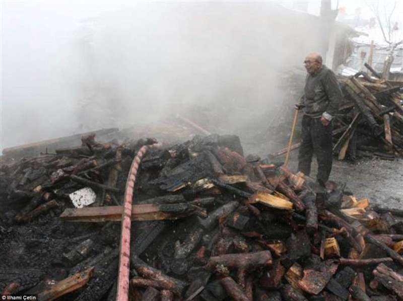 ▼Ali Meşe想要點燃燒柴烤箱,不小心將汽油灑在了爐子上導致爆炸,整座房子也被大火燒成灰燼。