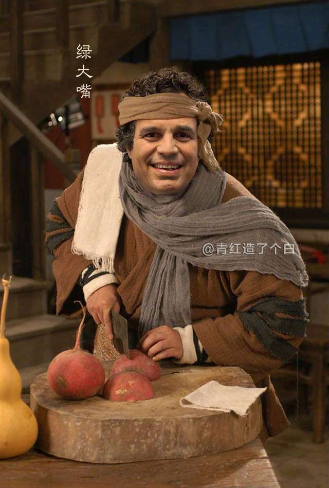 上面那些已經很厲害了,但「青紅造了個白」的功力遠高於此。他還將漫威超級英雄與電視劇《武林外傳》結合,讓超級英雄們穿起了古裝。