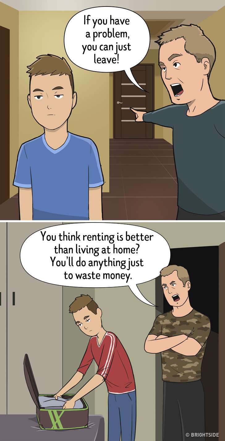 「有意見的話你就滾出去!」「你覺得租房比住在家裡好?你根本是在浪費錢!」