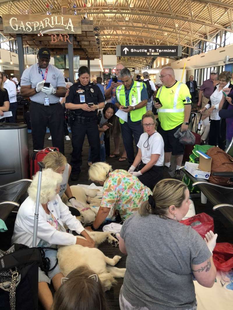 Ruff day for this mama at Gate F80! With the help of ARFF paramedics, service dog Eleanor Rigby just delivered 8 pups -7 males, 1 female. pic.twitter.com/kiijFz0FBq