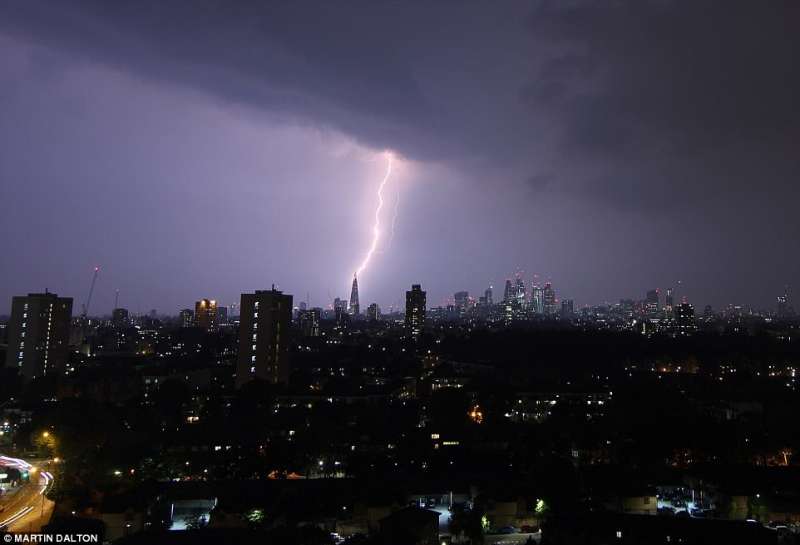 ▼倫敦也電閃雷鳴,天氣變糟糕。