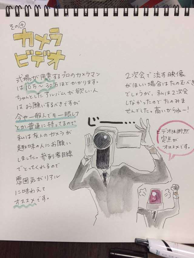 邀請專業的婚禮攝影師,價位大約在10~30萬日幣,但這一項其實找一個會拍照的朋友幫忙就可以了。