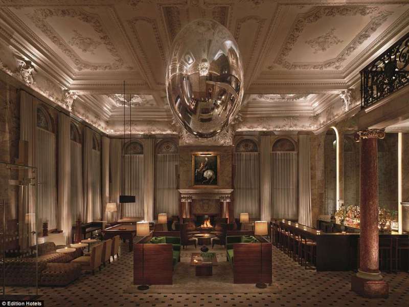 ▼倫敦愛迪森酒店:這間酒店位於倫敦的蘇荷區,由經理Ian Schrager設計。大廳的天花板很值得一看,懸掛在中間的銀色球體是最大的特色。