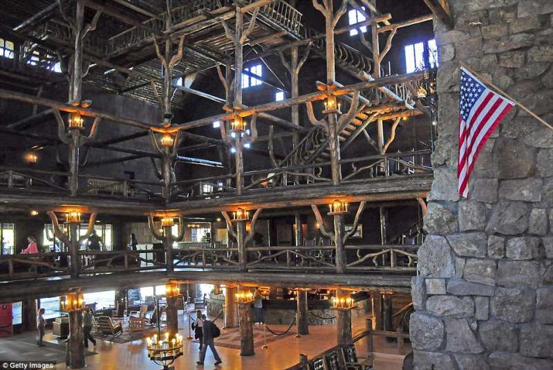 ▼美國老忠實酒店:這間酒店位於黃石國家公園,建於1903年,使用的石材和木材都是當地的材料。酒店大廳有石頭壁爐,還有手工製的時鐘。