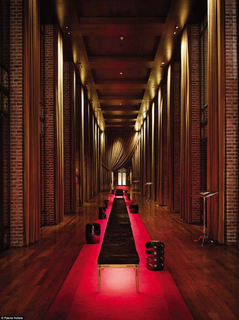 ▼布宜諾斯艾利斯Faena Hotel:這間酒店擁有105間客房,它曾經是倉庫,在設計師Philippe Starck的巧手下變成了現在的模樣。飯店保留了原本的特色,有從天花板垂到地板的窗簾、長長的酒紅色地毯,有一種神秘的感覺。