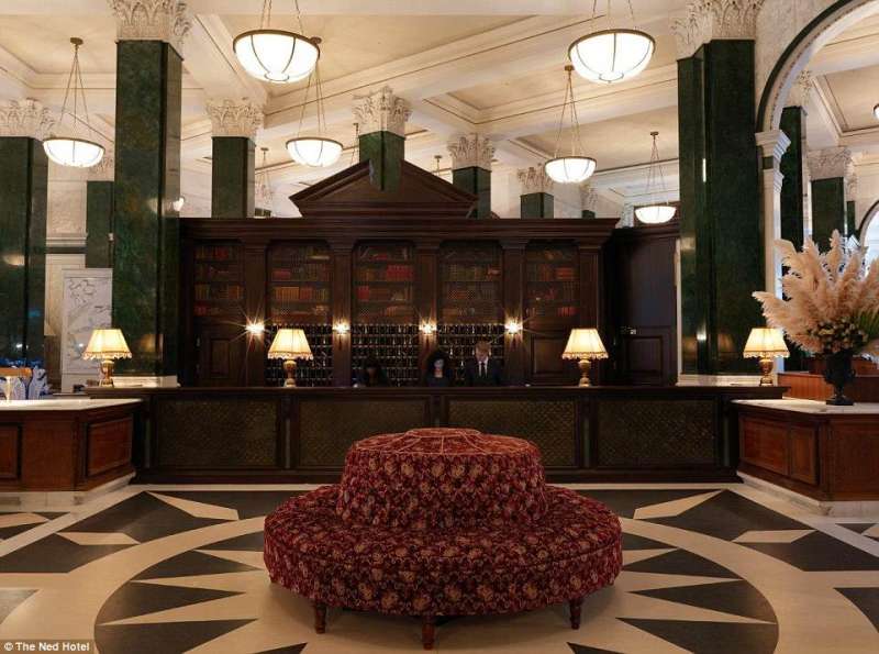 ▼倫敦The Ned飯店:這間飯店擁有252間客房,大廳如同保羅大教堂一般,有古老的黑木、低調奢華的大理石、華麗的天花板燈光,非常震撼。