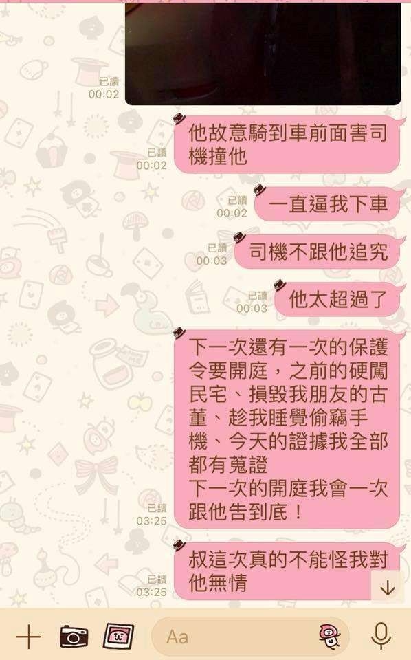 ▼不過翁男的跟蹤行為沒有停歇,日前周女出門赴約時,翁男突然騎到她搭乘的計程車旁,還頻頻拍打車窗,要她下車理論,「他從右側行駛,然後故意往前切,讓司機去撞他。」幸好小黃司機反應機智,立刻反鎖車門,加快行駛,周女也在此刻報警求救。