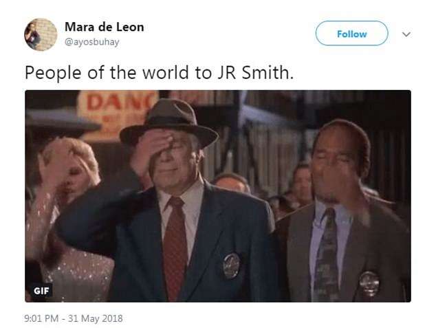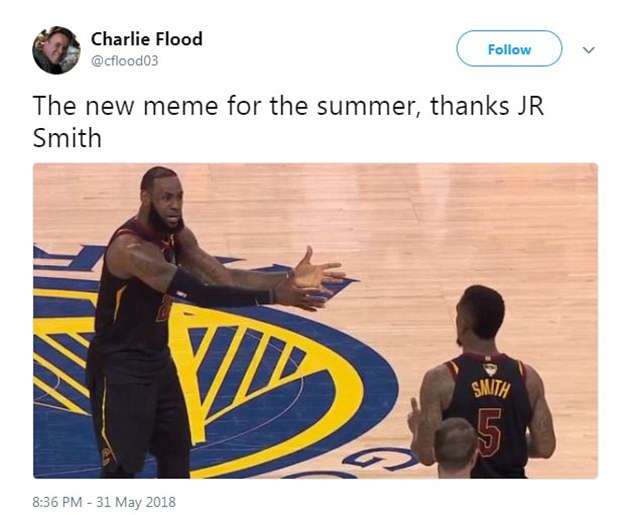 2018年06月02日美國NBA總決賽首場賽事戰況激烈,勇士隊與騎士隊數度進入拉鋸戰,不過就在最後關頭,搶得籃板的JR史密斯(JR Smith)卻放棄上籃,讓勇士隊在加時賽獲勝。觀眾紛紛對於JR史密斯的動作感到不解,更爆發改圖大戰!
