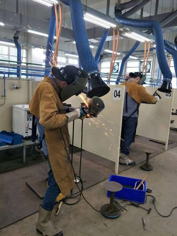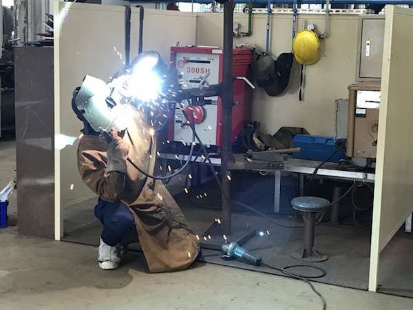 ▼三人也成為創校59年以來,首3位獲得電焊甲級證照的學生。練習電銲的過程其實極為辛苦,為了避免高溫鐵屑噴到身上,都得穿厚重的防護服、防護鏡,夏天的訓練場就是一座大型烤爐。