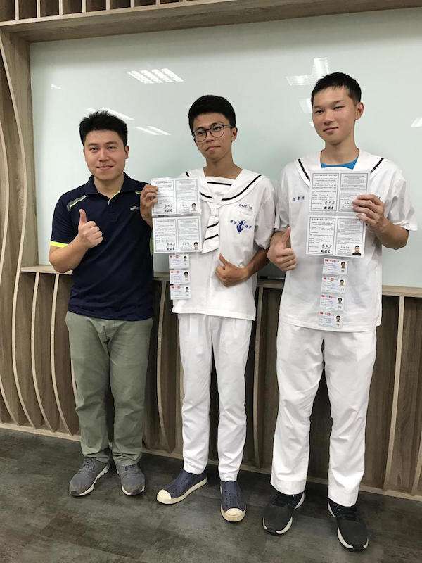 ▼許嘉文說,自己來自單親家庭,會想考取甲級,就是不想讓媽媽為自己的未來出路擔心。果然在甲級證照獲取後,就有船運公司對三人招手,還開出8萬元月薪攬才。
