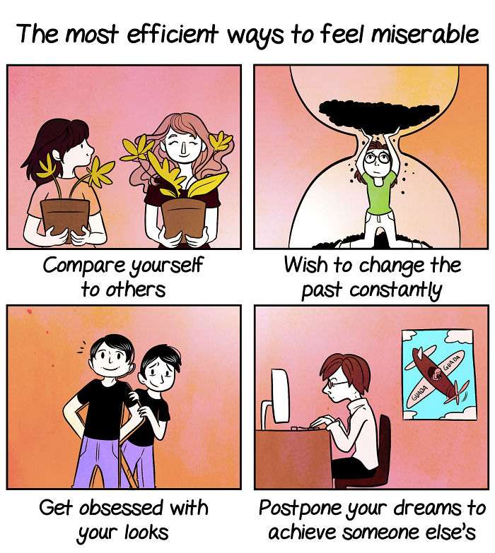 將自己與別人比較 、想要改變無法改變的事、對外貌太過執著、犧牲自己的夢想來成就別人的夢想。
