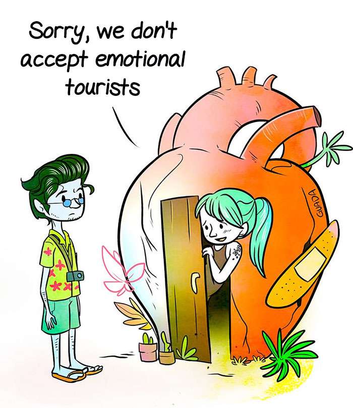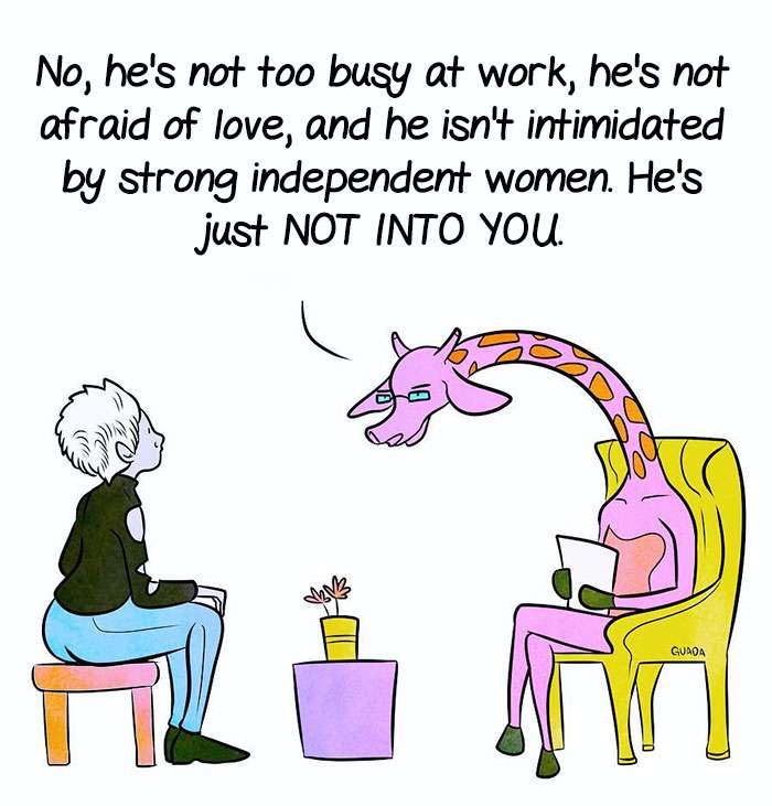 「沒有被點破的事實」(The Unsopken Truth)是委內瑞拉一位藝術家瑪利亞(Maria Guadarrama)所創作的漫畫系列,她以筆名「Guada」創作了一系列人類內心最真實想法的漫畫,讓讀者可以用輕鬆的方式思考背後的哲學層面。一起來看看她所創作的漫畫吧: