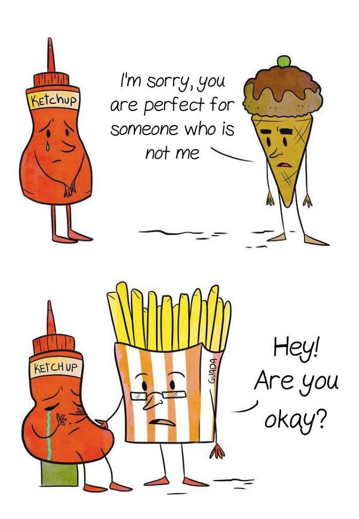雪糕對番茄醬說:「我很抱歉,你實在不適合我。」