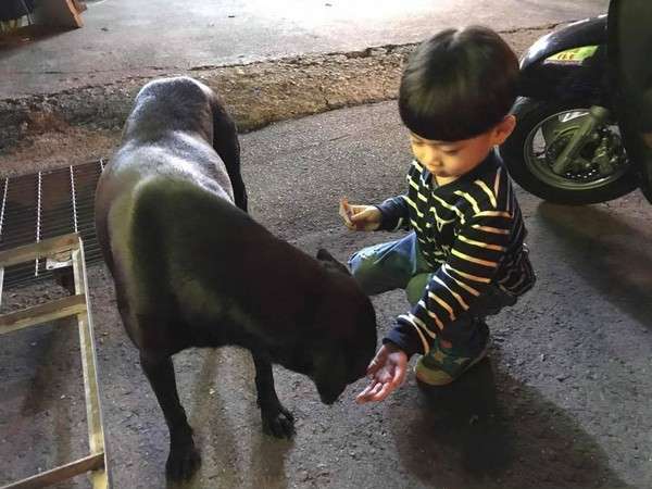 ▼鍾明真將這一幕拍下來,PO到網路說:「覺得很欣慰,一個快三歲的孩子竟然這麼愛狗,還會擔心狗狗明天沒東西吃該怎麼辦,孩子就是張白紙,你給什麼他就學什麼,相信他以後一定會是個好孩子的。」