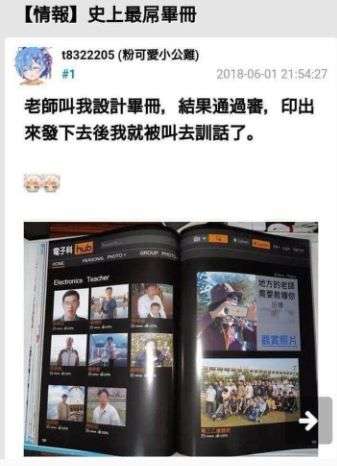 ▼網友將照片PO在巴哈姆特討論區表示,老師叫我設計畢業紀念冊,結果通過審,印出來後就被老師叫去訓話了。
