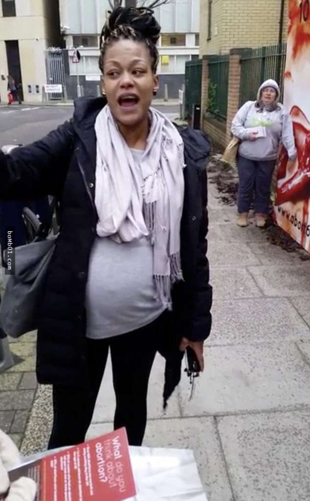 一個女性抗議者試圖反擊,聲稱她過去曾經墮胎過。孕婦說:「你墮胎是你的選擇,但你現在站在這裡只會讓其他人有罪惡感。許多人被你們辱罵,但你們根本沒去了解她們是為了什麼而墮胎,所以我認為這在很多層面上都是錯的。」