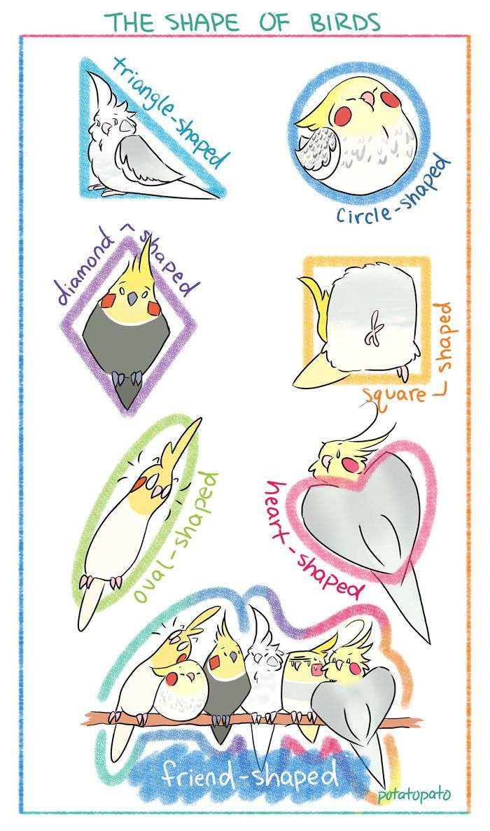 ▼鸚鵡的體型可以是三角形、圓形、菱形、四方形、橢圓形、心形、朋友形?