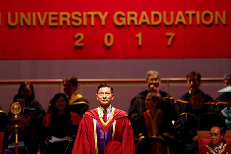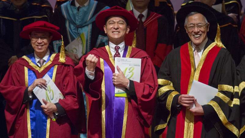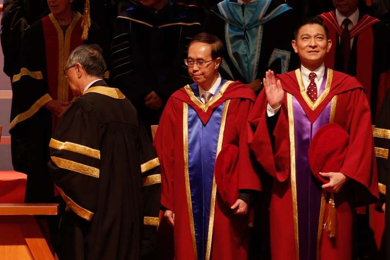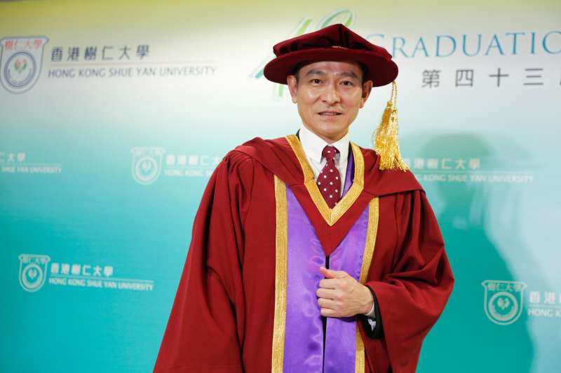 ▼這也是他第二次出席教育機構的公開場合,原來就在半年前,劉德華也獲得樹仁大學頒發榮譽文學博士學位給他。
