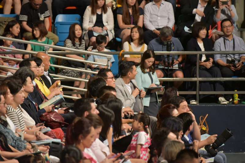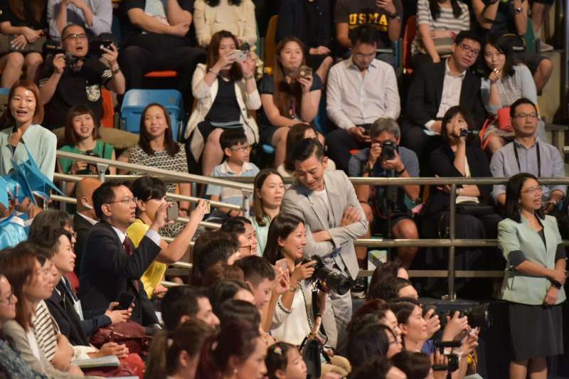 ▼當日他非常低調並沒有特別要求安排座位,和其他家長一起坐在台下。