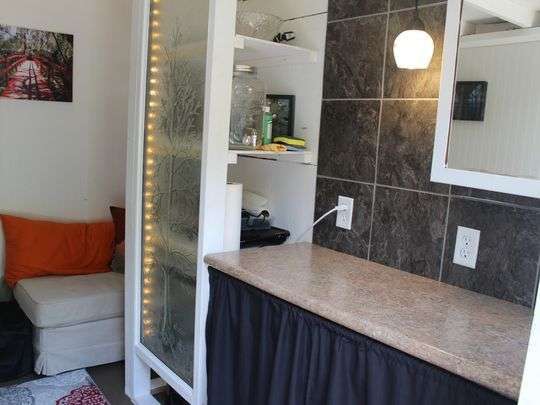 ▼經過一年多的努力他終於完成了自己的「夢幻小屋」,整座小屋裡有沙發、電視、櫥櫃。他還專門請懂電路的朋友幫忙改造電路,讓整間小屋明亮溫馨。