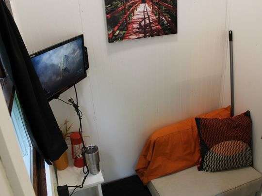 ▼這座寬1.67米,長3米的小屋成了Luke Thill的獨立世界,他每天放學後會在這裡完成作業,偶爾會在裡面過夜。