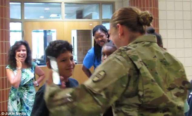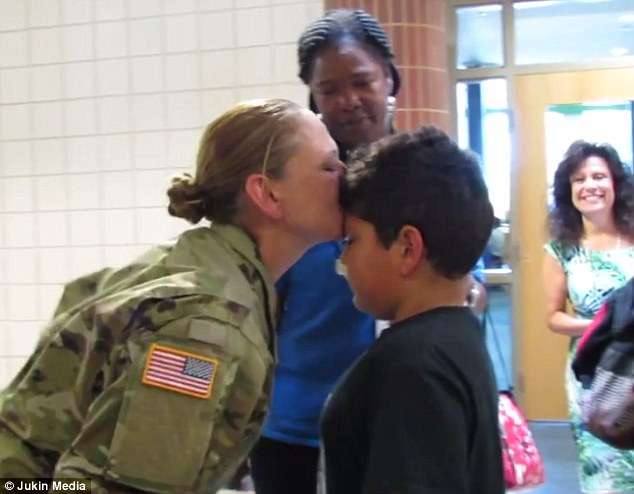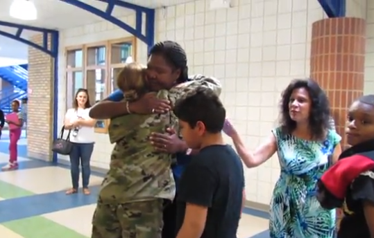 美國佛羅里達州一名軍人媽媽由於已經一年沒與兒子但丁(Dante)見面,為了讓但丁有一個「有媽媽」的母親節,特地從外地回到佛州,與老師串通好,準備給個大驚喜。