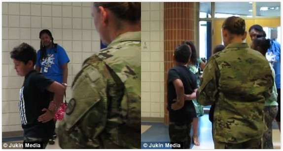 一年不見的軍人媽媽偷偷到學校 老師一叫他轉頭⋯眼淚hold不住了