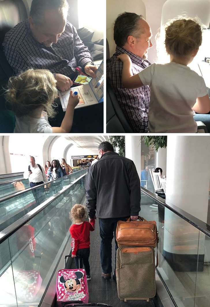 ▼這名男子幫助了一名還帶著另外兩個小孩的母親照顧她的大女兒,即使下了飛機之後還繼續照顧她。