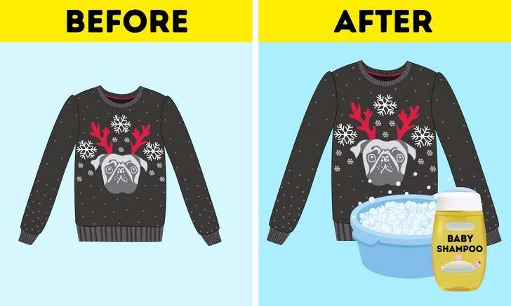 ▼5.用嬰兒洗髮精還原縮水衣物:將嬰兒洗髮精倒入溫水中,再把縮水的衣服放進去,浸泡10到15分鐘,然後擦乾,攤平晾乾,衣服就能恢復原狀。
