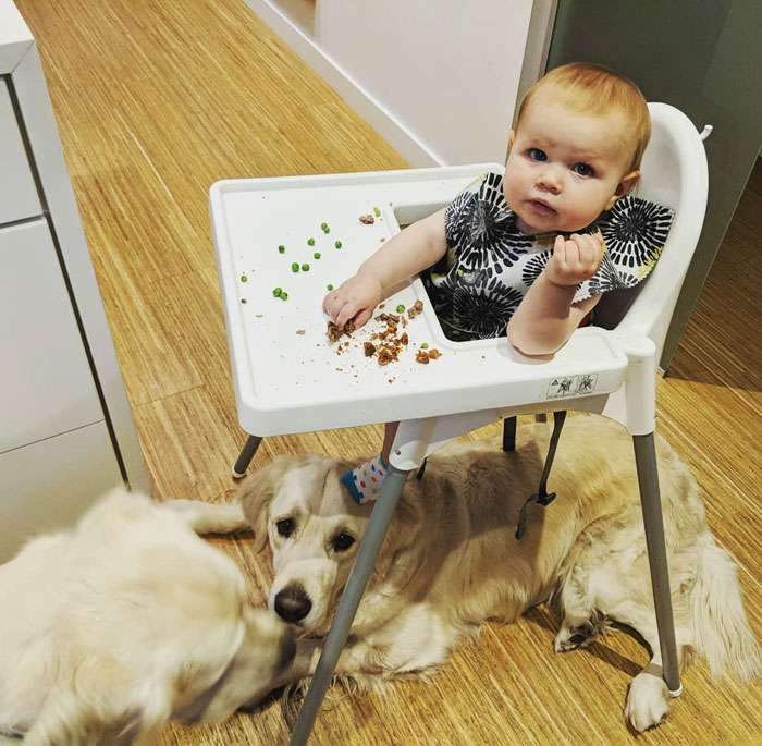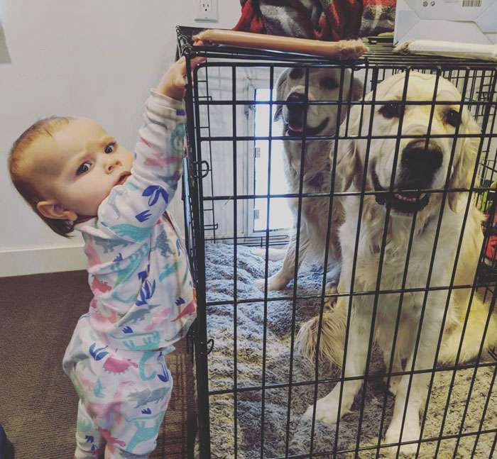 狗狗有著跟小孩一樣純真的心靈,所以也共容易成為好友。克里斯(Chris)和妮娜(Nina)就發現,家裡的兩隻黃金獵犬已經和15個月大的小寶寶混得很熟,甚至還會幫寶寶「逃獄」,讓她拿點心給牠們吃!