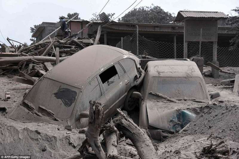 ▼這座距離富埃戈火山7公里的度假村曾經風景優美,旁邊的高爾夫球場還是PGA拉美巡迴賽的一站,現在也被火山灰掩蓋。