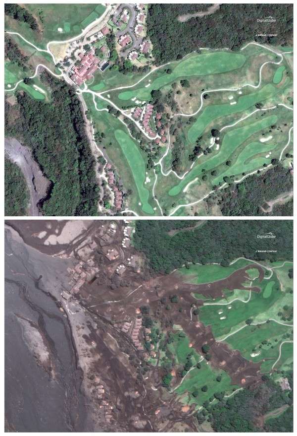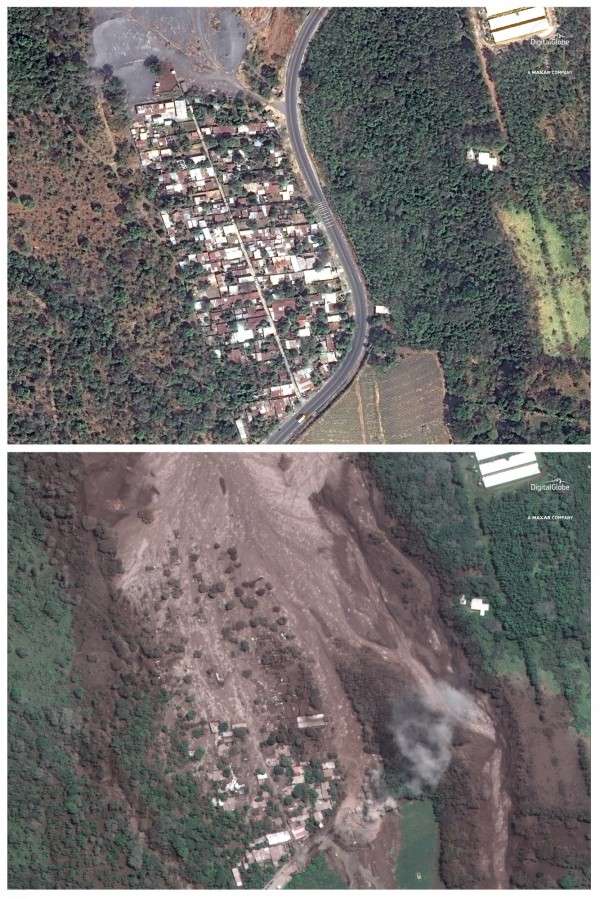2018年06月09日瓜地馬拉著名的活火山富埃戈火山(Volcán de Fuego)3日大噴發,滾燙的熔岩和飛石傾瀉而下,高溫火山灰直接吞沒附近的村落,導致近百人死亡。透過衛星拍攝的照片,可以看到火山噴發前後的改變,簡直讓人觸目驚心。