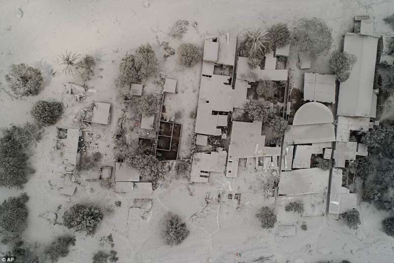 ▼聖米格洛斯洛特斯村被火山灰吞沒。