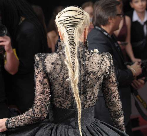 ▼原來她將頭髮用類似衣服縫線的方式,與身上所穿的蕾絲互相呼應,搭配起來真的堪稱天衣無縫!