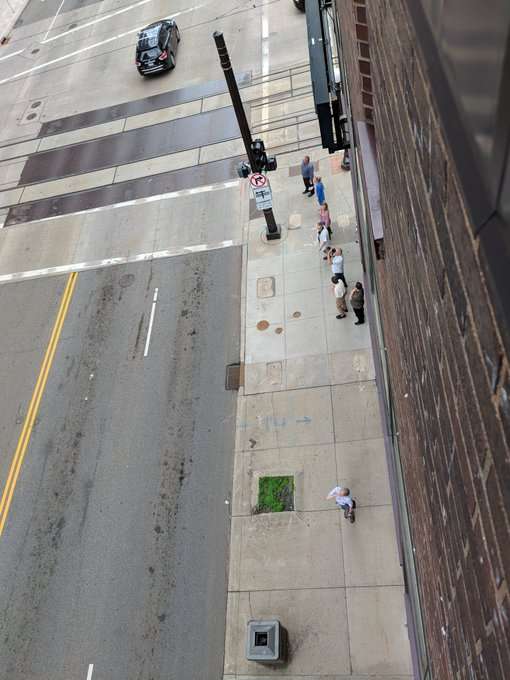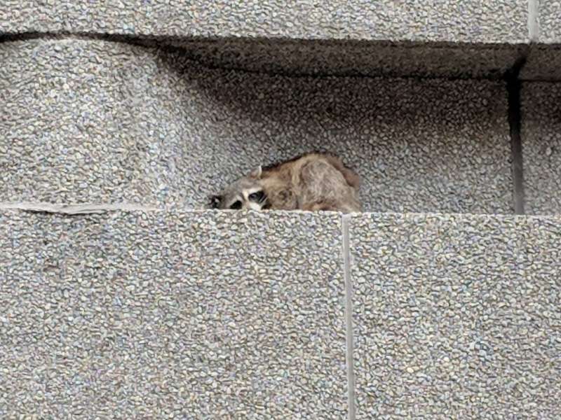 ▼這隻浣熊則被稱為「MPR浣熊」,因為明尼蘇達州公共廣播電台(Minnesota Public Radio,MPR)的員工最早發現牠的行蹤。這難得的一幕也吸引了許多民眾的圍觀,有人甚至拿出望遠鏡來獲取「第一手消息」。