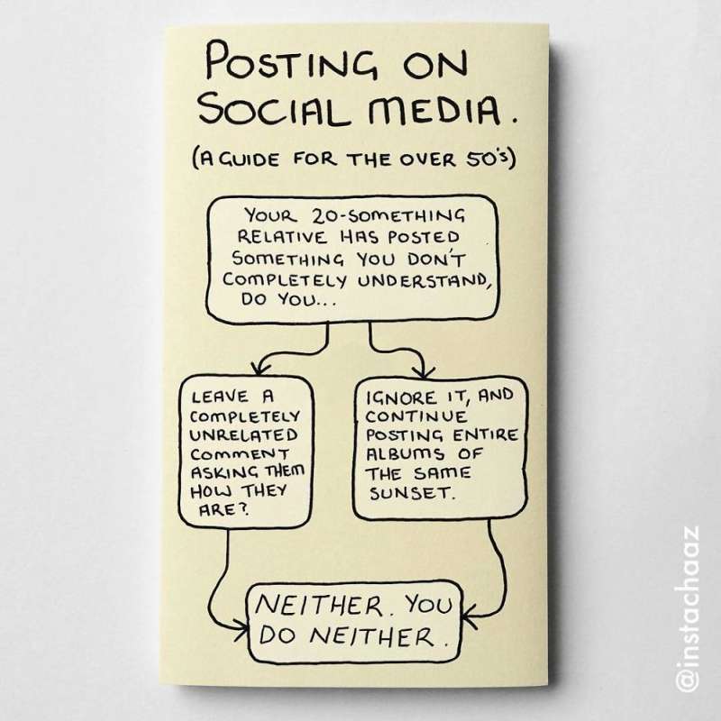 ▼給50歲社群網站使用者的小建議:不管看到你20幾歲的親戚po了什麼,別問就對了。