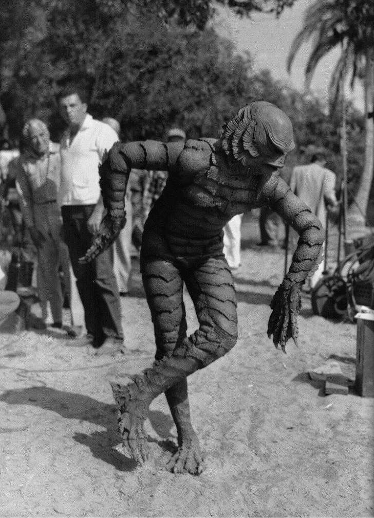 ▼演員本查普曼(Ben Chapman)拍攝《黑湖妖譚》(Creature from the Black Lagoon)時的樣子,1954年。