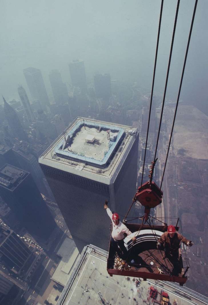 ▼在紐約建造世界貿易中心上方天線的40名工人,1979年。