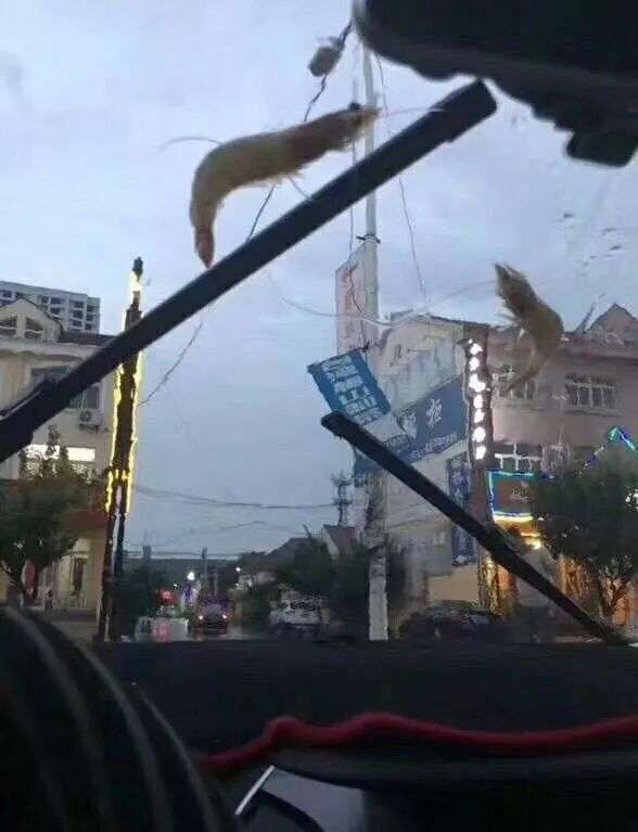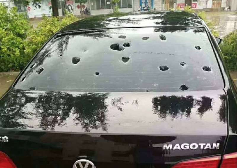 ▼海鮮雨的出現,必然伴隨著極其惡劣的天氣。這次青島不僅出現了海鮮雨,還出現了大如雞蛋的冰雹,把車子的後窗都砸碎了。