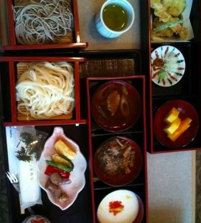 ▼日本:蕎麥麵、肉、蔬菜、魚、天婦羅。