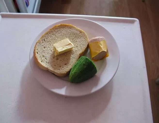 ▼波蘭:麵包配奶油、香腸、小黃瓜。