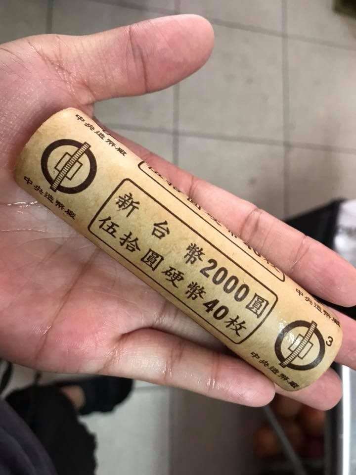 ▼原PO絞盡腦汁,最終決定送台幣硬幣50元,「想來想去,送這個應該可以喔!金色的重量又足重!」他當然不是只送一枚硬幣,而是送上5捲,每捲40個,非常霸氣。