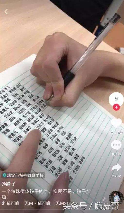 ▼這支15秒的影片內容非常簡單,只見一隻手握著一隻筆,在紙上一筆一劃寫起字來,但每一字體都像「列印」般整齊、穩健,一點也不像一般人寫的字,這樣短短的影片2天就吸引730萬網友點讚。網友紛紛大讚「你是印刷機嗎?字寫得好美」、「超漂亮,端正四方的字體」。