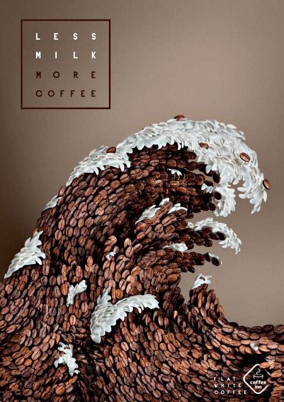 ▼作為江戶後期的名畫,這幅《富岳三十六景》系列作品也曾被拿來做很多種廣告,例如以下的咖啡廣告,就是以咖啡豆作出浪花的模樣!
