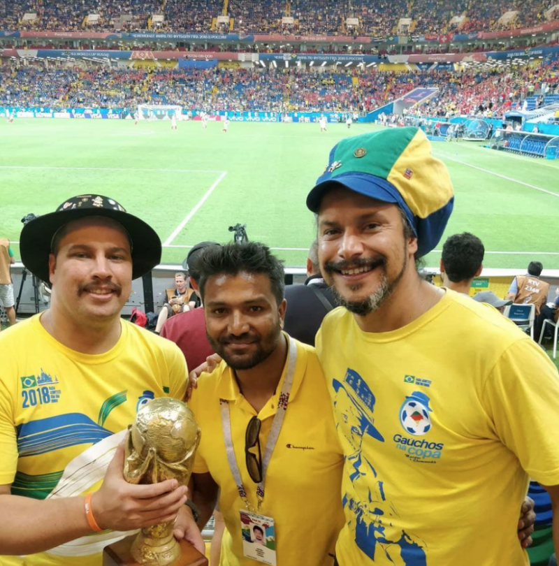 ▼這名叫做Clovis Fernandes的老爺爺,應該可以被稱作巴西隊最忠實的球迷了。為了幫熱愛的巴西隊加油打氣,他賣掉了自己開的餐廳,帶著招牌的牛仔帽子與大力金杯,跟著巴西隊開始征戰全世界。從1990年開始,他跟著巴西國家隊一起參與了7屆世界盃、6屆美洲盃和許多大大小小的賽事,去過了60幾個國家,也見證了巴西明星球員的世代交替。