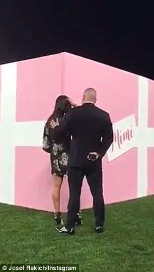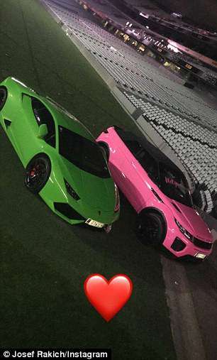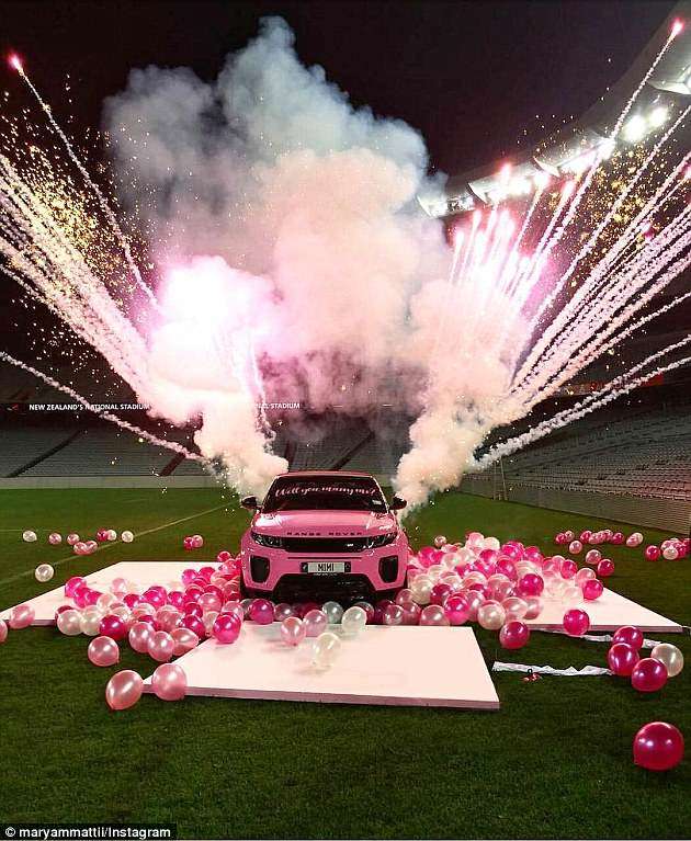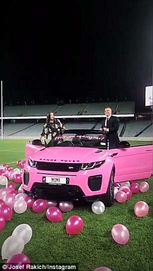 ▼Josef牽著女友的手來到足球場中央,那裡有一個粉色的大禮盒。他摘掉女友的眼罩,讓女友拉彩條。禮盒打開後,裡面除了浪漫的粉色氣球,還有一台粉色的荒原路華。