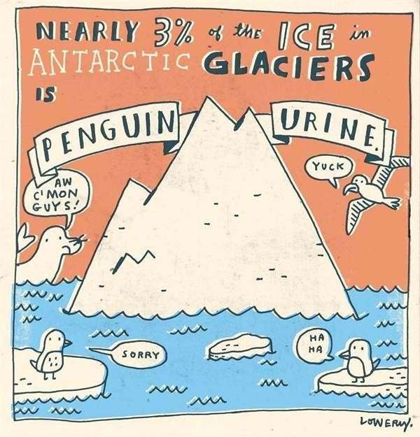 ▼南極的冰山,有3%的水分是企鵝尿。